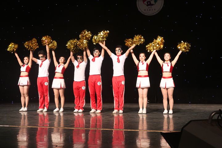 的健美操队由2014级的8位青春健儿组成:顾屿、范玖强、石越超、胡廷琼、李思雯、叶津含、于宇潇。两个月来,大家不怕苦、不怕累,在领队的带领下坚持训练。一遍遍的重复那既简单又复杂的动作,只为做到最完美,一次次的排练,只为在舞台上展现最完美的自己。终于,他们走到了这里。