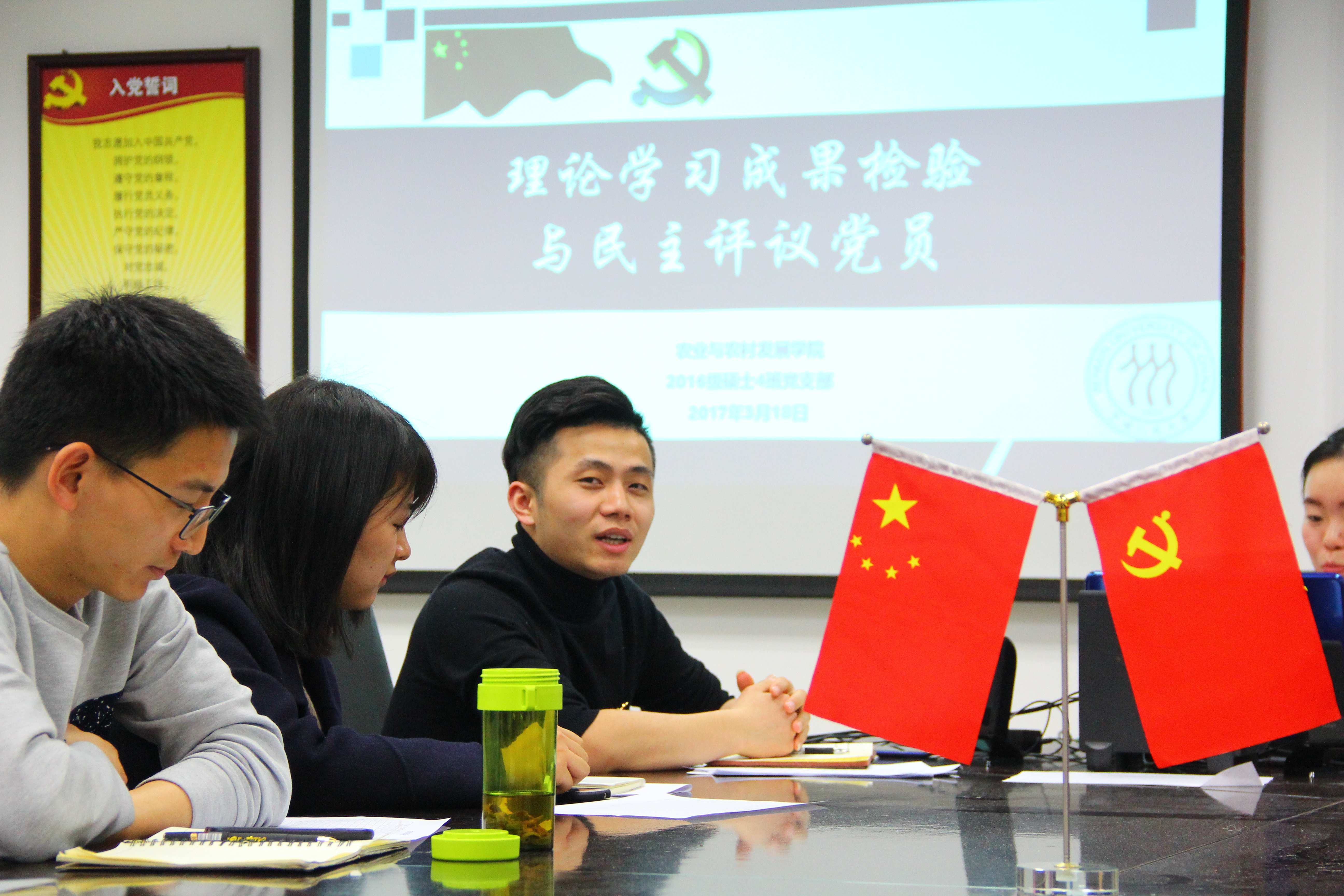 2017-03-213月18日,六合宝典app 2016级硕士4班党支部在明德主楼“党员之家”召开组织生活会,进行理论学习成果检验与民主评议党员。