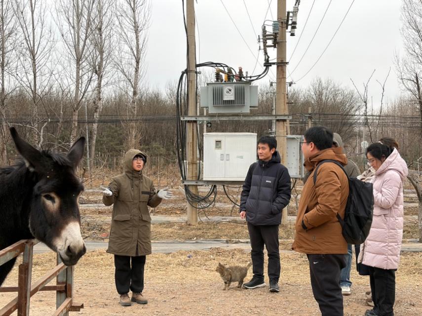 实践教学首站来到梨园基地。师生们实地探访了半地下高温大棚、核桃林及养鸡场,详细了解了基地“认养一头牛”及“劳动份额共享菜地”等创新项目。这些项目不仅丰富了农场业态,更实现了生产者与消费者的价值共创。