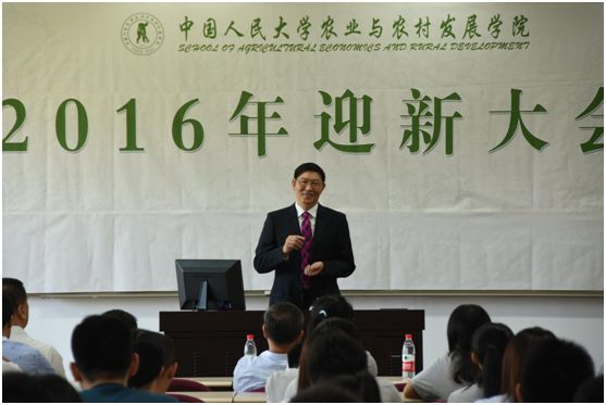 ,并简要介绍学院及各个专业的基本情况;接着,唐院长强调了在校期间认真学习的重要性,他为新生提出了三点期望:一是要成为知识丰富的农经人;二是要具备批判性精神,拥有独立思想的能力;三是成为一名心怀世界、有责任心的人大人。最后,唐忠院长希望每一位新生都能热心参与社会活动,积极主动地与老师和朋友们沟通、交流,并祝愿大家拥有一个丰富多彩校园生活.