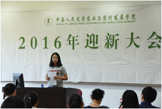 2016年迎新大会在国学馆226教室隆重举行。学院全体院领导、校友代表、在校生代表、学院部分行政老师以及2016级本、硕、博班主任和全体新生出席了大会。会议由学院党委书记张利庠教授主持。