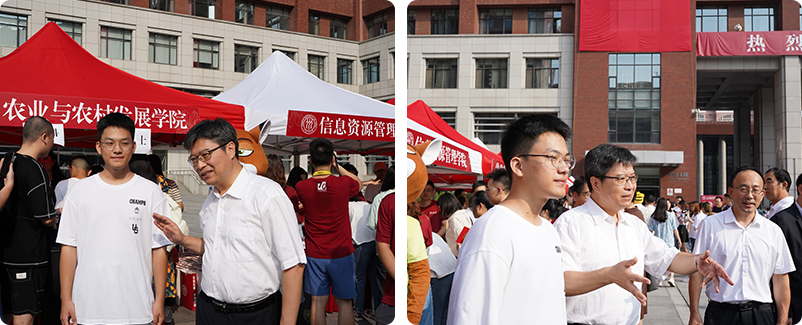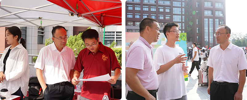 中国人民大学党委书记张东刚、校长林尚立等全体校领导在迎新现场与前来报到的新生亲切交流,并慰问志愿者和工作人员。校领导详细询问了同学们的情况和来校后的感受,对新生们的到来表示热烈欢迎,勉励同学们珍惜大学时光,得良师、结益友,以饱满的热情迎接新的校园生活。