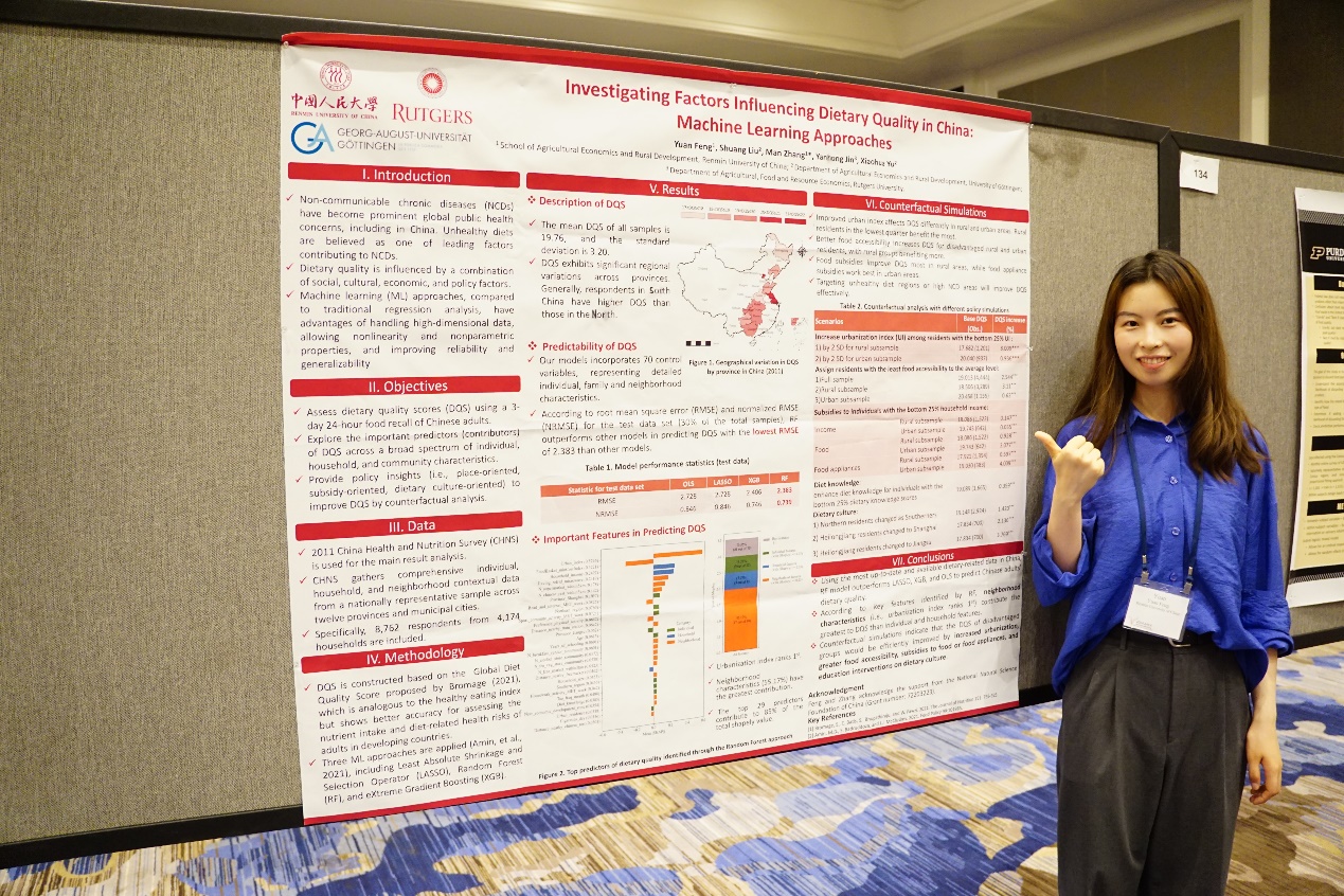 冯源做了题为“Investigating Factors Influencing Dietary Quality in China: Machine Learning Approaches”的海报展示,基于机器学习方法,对中国膳食质量的影响因素进行研究。