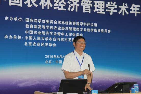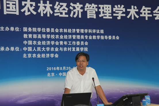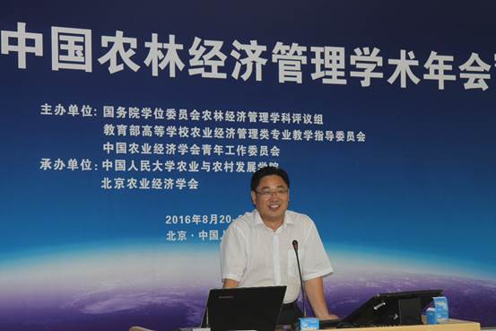 2016-08-228月22日上午11时,2016中国农林经济管理学术年会第二场学术前沿报告会与闭幕式在中国人民大学明德法学楼0101教室举行。报告会与闭幕式由中国农业经济学会青年工作委员会主任委员、中国人民大学苏州校区党委书记、中法学院和国际学院院长、六合宝典app 教授朱信凯主持。