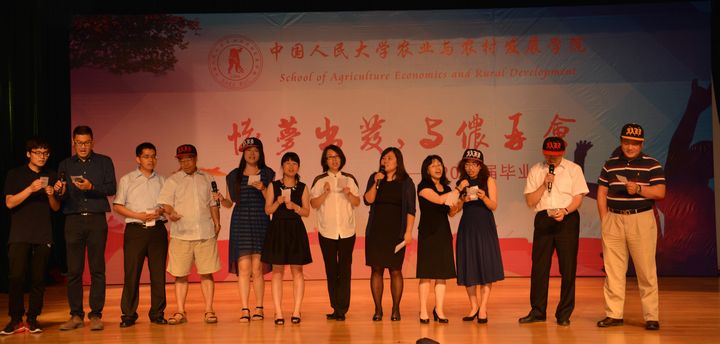 在学校八百人大讲堂举办主题为“怀梦出发,与侬再会”2015届毕业晚会。学院院长唐忠教授、党委书记张利庠教授、副院长孔祥智教授、党委副书记唐传英副教授应邀出席,毕业班班主任、学院部分行政老师以及全体2015届毕业生参加了晚会。