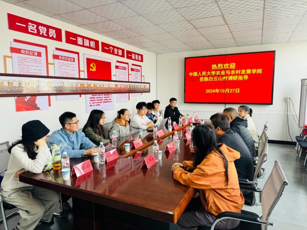 10月27日上午,实践团来到三义寨乡白云山村,与村干部们开展座谈交流,学习村庄发展建设经验。这座村庄近年来在村支书的带领下,积极探索乡村振兴之路,通过改善人居环境、发展高效农业、加强基层党建等措施,改变了贫穷落后的旧貌。