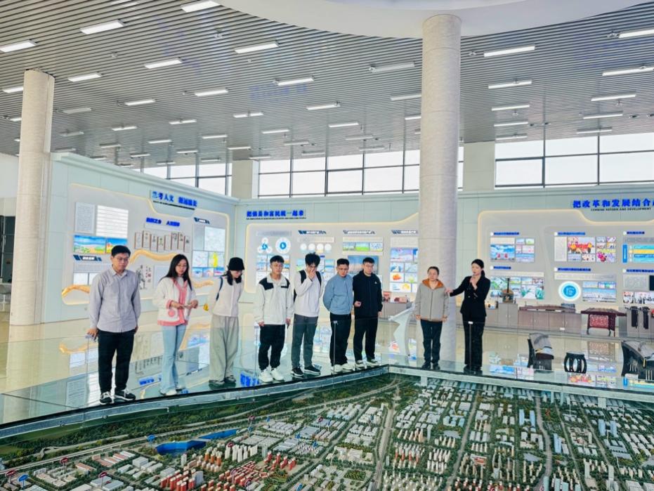 在回顾了兰考抗击“三害”的斗争历史后,实践团来到了城市会客厅,了解兰考当前的发展状况。这里是一个集文化、旅游、休闲、商务等功能于一体的综合性场所,也是展示兰考新风貌的重要窗口。展厅通过图片、模型和详细的文字说明,全面展示了兰考县的历史文化、自然风光和当前的经济发展情况。