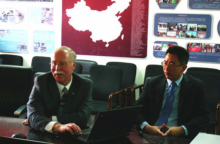 教师进行座谈。双方就农业技术推广、成果转化、英文期刊等方面的合作进行了沟通和交流。Swanson 教授还以中美农业推广体系的特点和差别为题做了学术讲座。