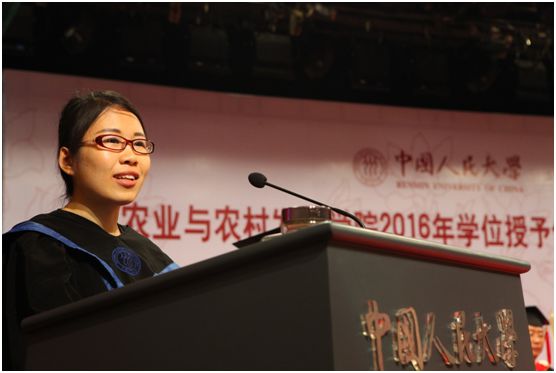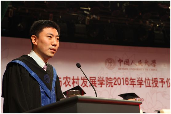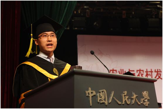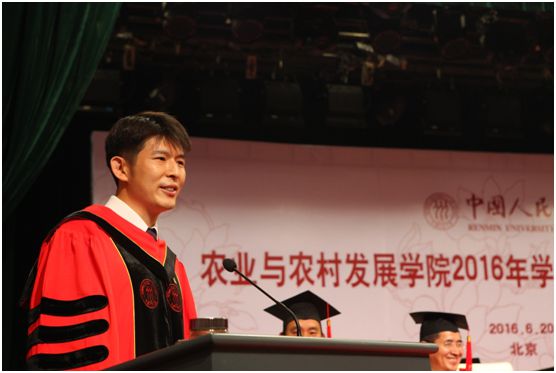 庄严的学位证书颁发仪式结束后,博士毕业生代表周振上台发言,他以回忆、感恩和展望为主题,追溯了在人大、在农发的点点滴滴,表达了对老师、对同学的感激之情,憧憬了自己和母校的美好未来。