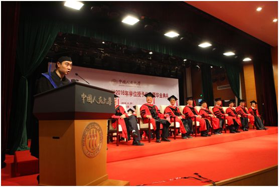 本科生代表韩丹阳同学最后一个发言,字里行间流露着不舍之情,不舍熟悉的课堂,不舍挥汗的操场,不舍敬爱的老师,不舍亲密的同学,不舍人大的红砖绿瓦,不舍自己的美好韶华。