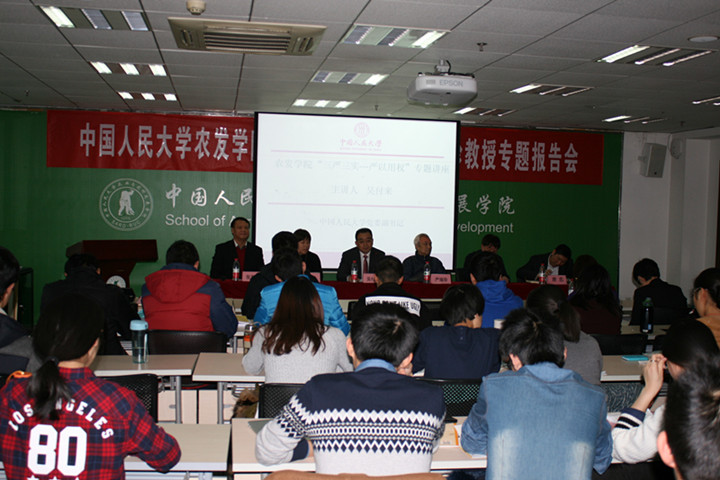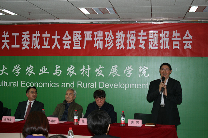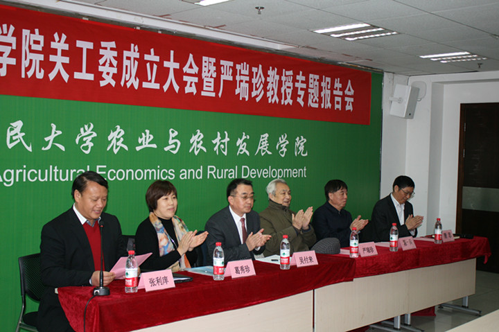 2015-11-2711月25日下午,六合宝典app 关心下一代工作委员会成立大会暨严瑞珍教授专题报告会举行。会议由学院党委书记张利庠教授主持。中国人民大学荣誉一级教授、农业经济系元老严瑞珍教授,学校党委副书记、校关工委主任吴付来教授、校关工委常务副主任、原副校长陈一兵教授,校关工委副主任、离退休工作处葛秀珍处长出席大会。学院院长唐忠教授、学院关工委委员、青年教职工代表、学生代表参加此次大会。