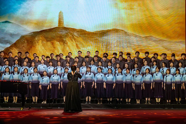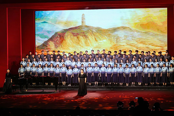 与公共管理学院组成的应经—农发—公管联队登上了舞台,唱响明德堂,歌颂延安之美,歌颂革命热情。